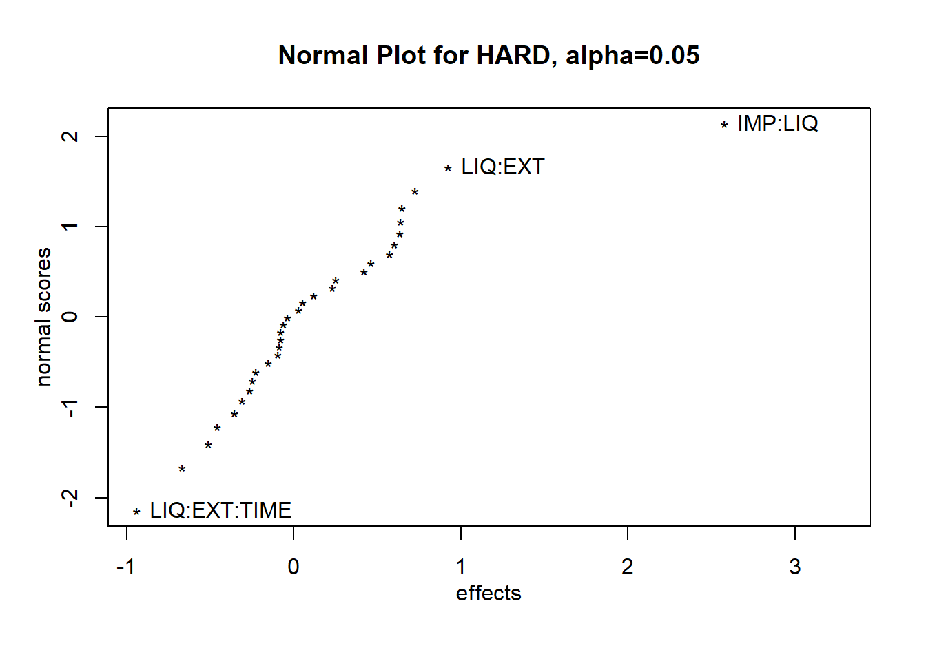 LIQ:TIME + EXT:SPEED + EXT:TIME + SPEED:TIME + IMP:LIQ:EXT +